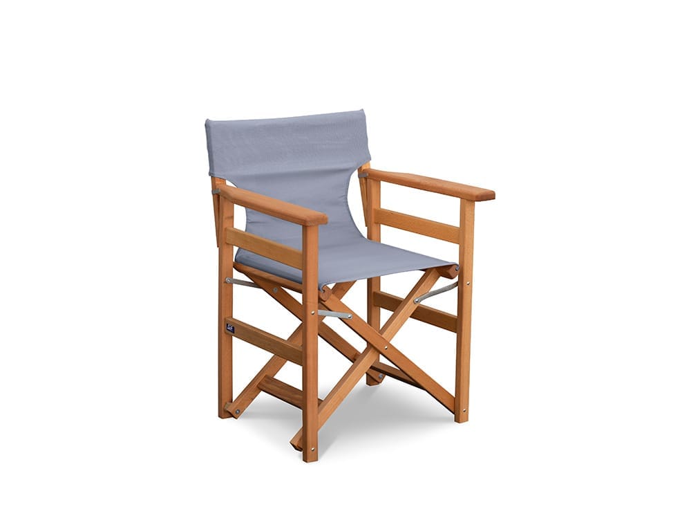 Πολυθρόνα σκηνοθέτη πτυσσόμενη. Η καρέκλα είναι Ελληνικής κατασκευής από πολύ ανθεκτικό και χοντρό ελληνικό ξύλο οξυάς που ενδείκνυται για χρήση σε εξωτερικούς χώρους προσφέροντας εξαιρετική ποιότητα και αντοχή με διάρκεια ζωής άνω των 20 ετών. Οι προδιαγραφές της κατασκευής της είναι ιδανικές για επαγγελματική χρήση, καθώς έχει υποστεί επεξεργασία με ειδική βαφή εμποτισμού ενάντια στη φθορά από τη χρήση και τις καιρικές συνθήκες. Μπορείτε να την αφήσετε εκτεθειμένη έξω όλο το χρόνο χωρίς να ανησυχείτε για τον ήλιο, τον αέρα ή τη βροχή. Απαράμιλλο στυλ και ποιότητα που δεν πρέπει να λείπει από κανένα σπίτι, τοποθετήστε τις καρέκλες στον κήπο ή τη βεράντα, καθίστε αναπαυτικά και απολαύστε την απόλυτη αίσθηση της πολυτέλειας και της άνεσης. Χαρείτε όμορφες, χαλαρωτικές στιγμές με αγαπημένα πρόσωπα και εντυπωσιάστε με την καλόγουστη επιλογή σας. Η καρέκλα έχει διαστάσεις 54Χ61 εκατοστά με ύψος καρέκλας 80 εκατοστά και διαστάσεις καθίσματος 48,5×40 εκατοστά. Διπλώνει πανεύκολα για να αποθηκεύεται, καταλαμβάνοντας ελάχιστο χώρο.